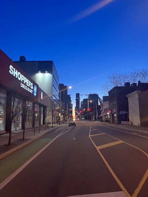Once again, as has been the case for the past three years in March, “my” pool has closed for a week of scheduled maintenance, and so my daily routine (do we call it a “rut” for short? Maybe we do?) has had to temporarily shift. As it’s the week following the clocks’ change to Daylight Savings Time, the shift has been extra, me waking before the sun and venturing out in the early morning amidst the cheer-cheer-cheers from wakey cardinals singing in the trees to ride the subway east and then walk south to the Wellesley Community Centre, a bright and modern swimming pool that’s free for everyone and whose cool water is such a refreshing change from where I usually swim. And I really love the shift so much, a window onto a different part of the day, a different part of the city, a new direction, a bit of flexibility that demonstrates just how much room there is to stretch and grow, room I don’t pay much attention to most of time. Because I like my routine very much—if this is a rut I will take it. But it’s just so easy to forget how much more there is, how different things can be, how invigorated I feel when I step out of my comfort zone, and so it’s useful to be reminded, and it makes me wonder how I might look for this kind of space in other part of my life.