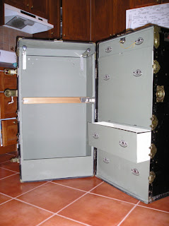 Stuart is not convinced but I think it’s the best thing ever. We found this vintage wardrobe trunk out on the curb tonight bearing a sign that said “Free- Take Me”. And so we did, and it’s lovely. It came with little keys for the lockable compartments, and is in fine condition. The trunk bears old stickers from passage to Glasgow, and all the latches work. It doesn’t smell, which is always important. I will admit we have no need for it and no place to put it, but it just seemed too perfect to walk past. And I am reasonably sure I won’t come to regret carrying it up the stairs and into our apartment. One day we’ll know we needed it. I do have much pity, however, for whoever had to lug it around when it actually contained things. I will not be taking this piece of luggage abroad anytime soon.