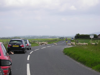 Oh, welcome to the North of England. After a whole of night of all flying no sleep, we landed in Manchester and picked up our rental car which, due to a mix-up, turned out to be a brand new Saab 93 Convertible. We couldn’t believe it either. And then we drove three and a half hours up to North Yorkshire, pulling off once when my lack of sleep was making me see triple, this compounded by my baptism by fire driving on these Great British roads (roundabouts and driving on the wrong side are really just fine, but the narrowness and twistiness of these roads at high speed make driving rather terrifying). We finally arrived in Sinnington, where the marquee was already set up on the village green and we saw the bride and groom sorting out last minute arrangements. Dinner down the pub that night, and then we went to bed early at our splendid b&b. Next day was all wedding, and it was all gorgeous, perfect, hot sunny day, gorgeous bride and groom, we got to ride there in a vintage Bentley, the 11th century church was predictably lovely, all the guests were good fun, cupcakes, good company, first dance and then more dance, champagne, hilarity and porkpies. Yesterday we boarded our vintage bus for a trip o’er the moors and an incredible lunch at Byland Abbey (roast lamb shank, followed by sticky toffee pudding). And then back to Sinnington, and we were off with the top down, driving across the countryside on A roads, feeling quite Two for the Road (and me regretting I hadn’t packed a headscarf or movie star sunglasses). England is breathtakingly gorgeous and spreads far and wide. Soon the Yorkshire Dales turned into The Pennines, and then the clouds moved in and thunder rolled. I’ve rarely seen a more dramatic landscape, but then I come from Central Ontario where we don’t do drama much. The sun came out again, and we got on the motorway (the top was back up by this time, as we’d anticipated the rain in time). Eventually after 4 hours of driving, we arrived in Fleetwood Lancashire, and were reunited with our England Mum and Dad, who were quite happy to welcome home their prodigal son and his dotty wife.
