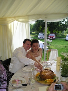Oh, welcome to the North of England. After a whole of night of all flying no sleep, we landed in Manchester and picked up our rental car which, due to a mix-up, turned out to be a brand new Saab 93 Convertible. We couldn’t believe it either. And then we drove three and a half hours up to North Yorkshire, pulling off once when my lack of sleep was making me see triple, this compounded by my baptism by fire driving on these Great British roads (roundabouts and driving on the wrong side are really just fine, but the narrowness and twistiness of these roads at high speed make driving rather terrifying). We finally arrived in Sinnington, where the marquee was already set up on the village green and we saw the bride and groom sorting out last minute arrangements. Dinner down the pub that night, and then we went to bed early at our splendid b&b. Next day was all wedding, and it was all gorgeous, perfect, hot sunny day, gorgeous bride and groom, we got to ride there in a vintage Bentley, the 11th century church was predictably lovely, all the guests were good fun, cupcakes, good company, first dance and then more dance, champagne, hilarity and porkpies. Yesterday we boarded our vintage bus for a trip o’er the moors and an incredible lunch at Byland Abbey (roast lamb shank, followed by sticky toffee pudding). And then back to Sinnington, and we were off with the top down, driving across the countryside on A roads, feeling quite Two for the Road (and me regretting I hadn’t packed a headscarf or movie star sunglasses). England is breathtakingly gorgeous and spreads far and wide. Soon the Yorkshire Dales turned into The Pennines, and then the clouds moved in and thunder rolled. I’ve rarely seen a more dramatic landscape, but then I come from Central Ontario where we don’t do drama much. The sun came out again, and we got on the motorway (the top was back up by this time, as we’d anticipated the rain in time). Eventually after 4 hours of driving, we arrived in Fleetwood Lancashire, and were reunited with our England Mum and Dad, who were quite happy to welcome home their prodigal son and his dotty wife.