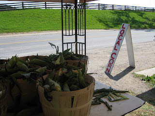 What that summer did, however, is turn me onto fresh food like serious. I realized the difference in taste between local food and food trucked in is worth every penny extra. And especially since I’m now feeding a little person, and trying to teach her to appreciate the marvelous flavours the world offers, I make a point of buying the freshest, best-tasting fruit and vegetables available. And this time of year, there is plenty of stuff available. Becuase the season of abundant abundance has begun (and oh my, to imagine August– bursting peaches, corn on the cob, tomatoes, necterines, and blueberries…), and our local market offered up plenty of delicious this week.