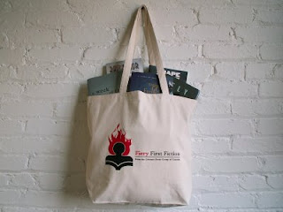 Oooooh– Fiery First Fiction! A fantastic promotion by the Literary Press Group. Events are being held across the country, and I’m looking forward to attending Monday night’s in Toronto at Supermarket. FFF is promoting 14 first novels published by Canadian small presses. Buy one at participating independent bookstores and get a free durable book bag– I just got mine, and durable IS the word. I love it. Though I could only get one book today (I am trying to curb book buying habits to no more than one daily) so I selected Things Go Flying by Shari Lapeña. And yes, I chose it by its cover, but I think I’m on to something good.